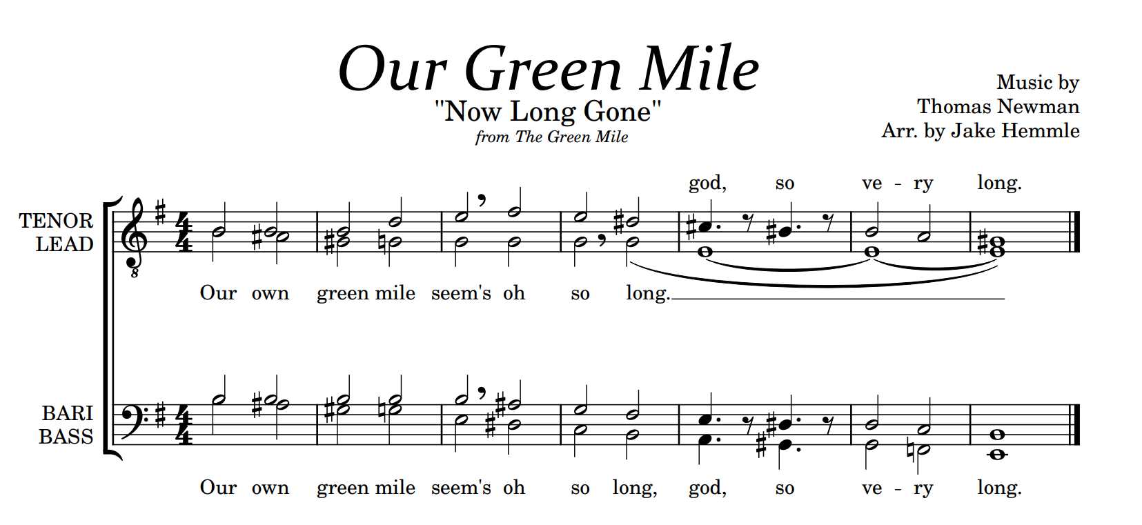 | Lyrics: | Our own green mile seems oh so long, god, so very long. |